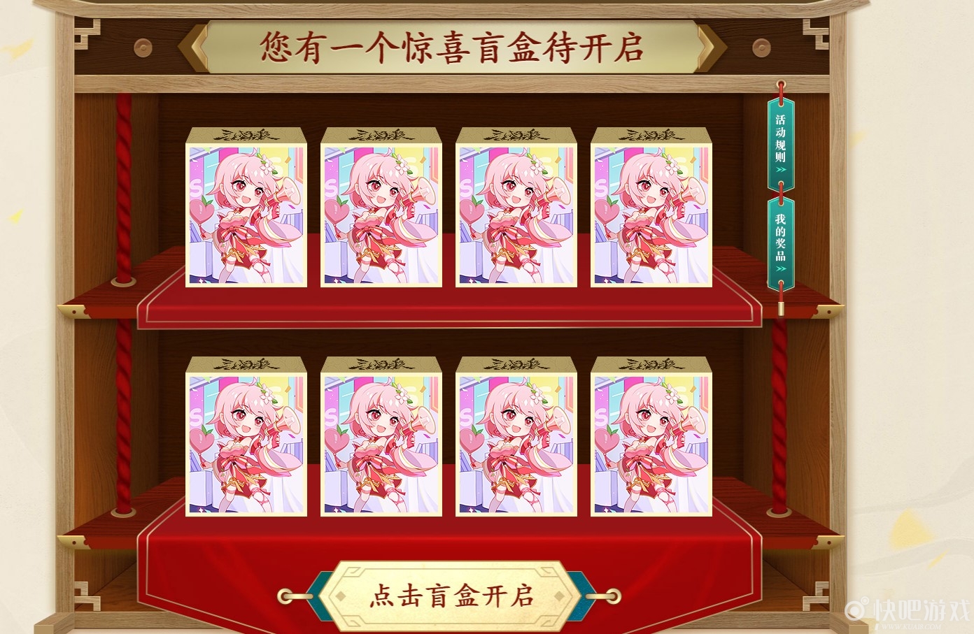 活动期间,玩家可在盲盒界面中任选一款盲盒开启,每个账号每期活动只能开启一次。