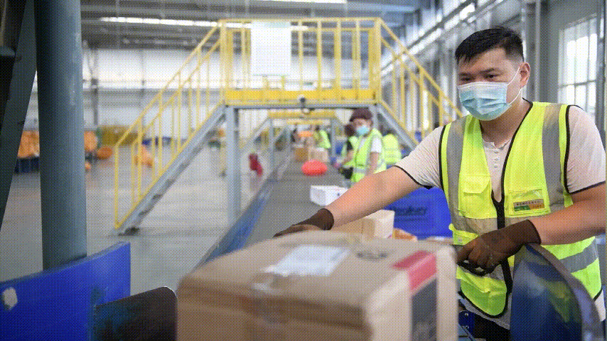 园区快递项目负责人马凤祥介绍,“新引进的分拣设备,俗称八爪鱼,是厂家根据我们的快递分拣数量和产品结构量身打造的,对异形件的识别率和包容性更强。”在新设备运行初期,为深入了解分拣流程、效率和发件过程可能出现的问题,他们一班人坚持每天到现场和工人们一起扫码、分拣,针对操作中发现的问题,联系厂家对接快递公司及时解决。