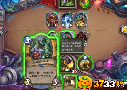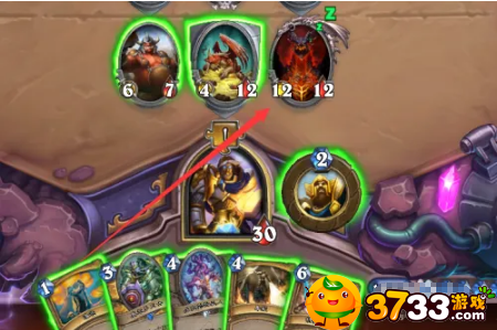使用石拳食人魔随从攻击对面的贪睡巨龙。