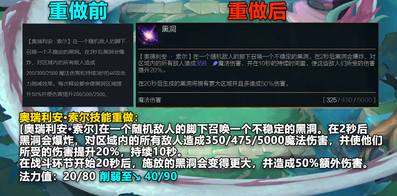 以前的索尔依靠法转还能快速叠黑洞范围,到回合的中后期也能实现全屏秒杀,但现在的星界龙黑洞范围是固定的,只有在战斗20秒之后才能增加范围,这启动条件明显比之前要苛刻很多。