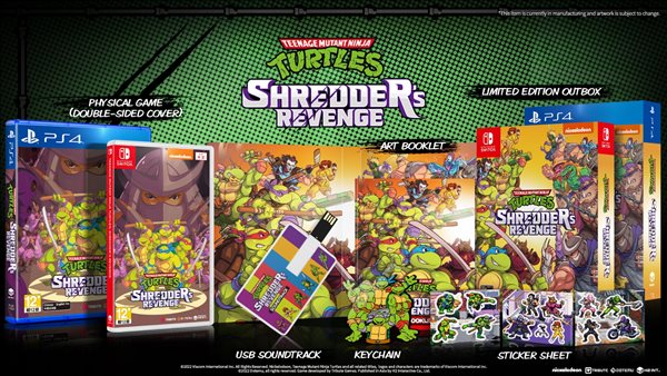 《忍者神龟 施莱德的复仇》PS4、Switch繁体中文实体版将于8月25日推出,普通版包含游戏本体、可替换封面、贴纸和美术集;限定版在普通版的基础上增加了特制外盒、钥匙圈、原声音乐USB。
