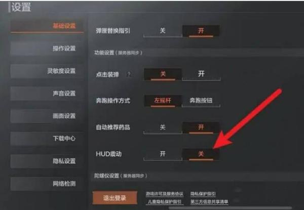 在设置界面里,选择基础设置,接着找到HUD震动。