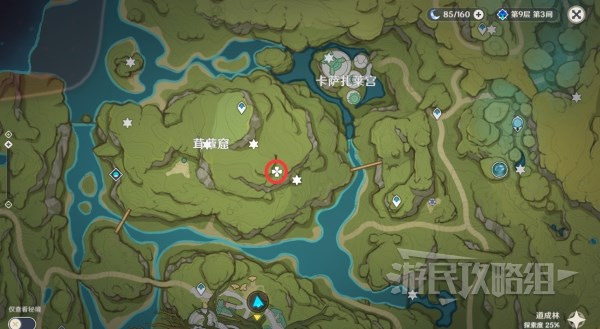 在须弥城北边,茸蕈窟西侧悬崖上。传送到附近的传送锚点,然后往悬崖下飞即可到达。