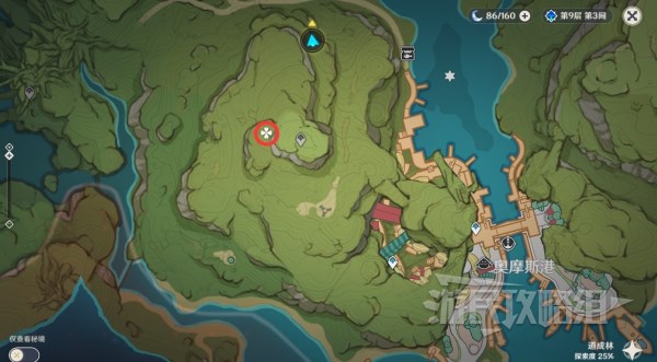 在奥摩斯港西北方向悬崖上有个地灵龛,还没有解锁附近传送锚点的话,可以从东侧悬崖爬上去。