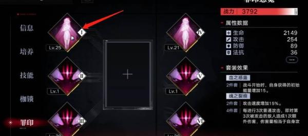 点击进入后,可以先点击任意一个烙印槽,再选择自己喜欢罪印装备,装备后罪印的属性将会增加到禁闭者身上,当装备2件套或者4件套时还会有套装加成,而罪印还可以培养得更加厉害