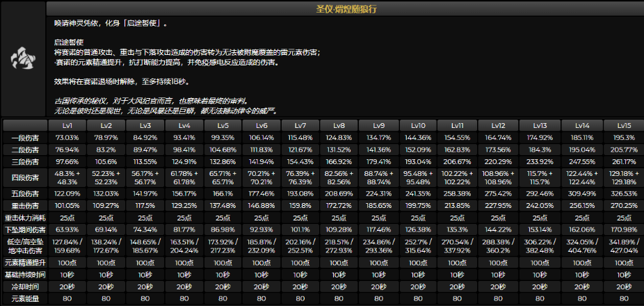 突破天赋「落羽的裁择」的渡荒之雷:元素精通的250%。
