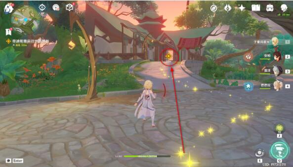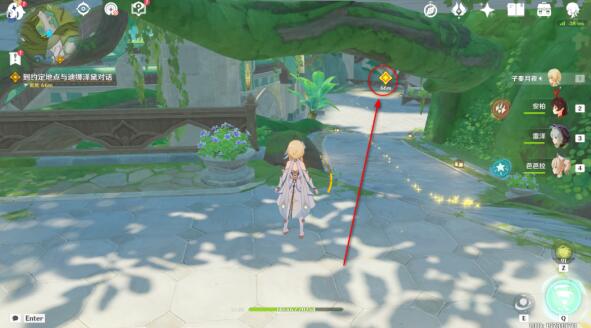 1、我们接到任务之后,我们沿着光标处来到约定的地点和迪娜泽黛对话。